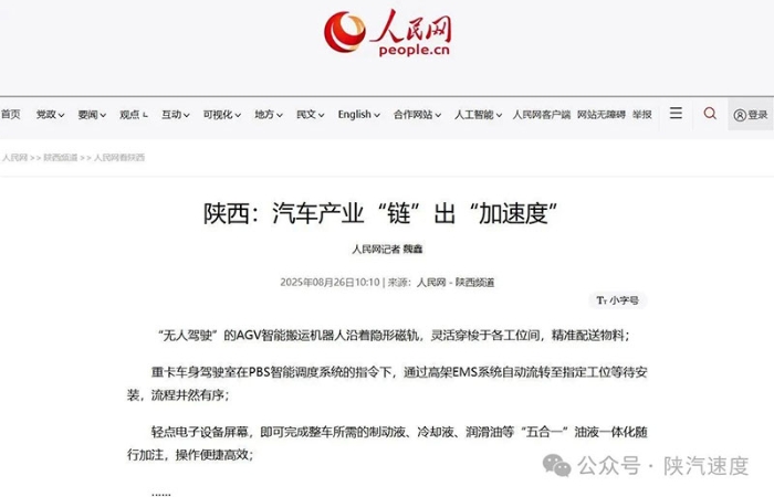 2025年上半年,陕西汽车产量94.28万辆,同比增长25.18%;乘用车(新能源)产业链和商用车(重卡)产业链合计实现产值3169.44亿元,占全省34条产业链总产值的27.66%。