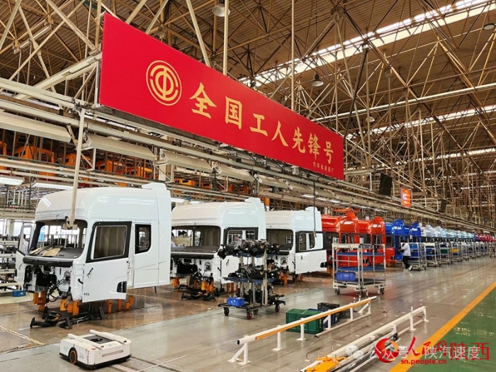 智能化变革带来了效率的跃升,平均每288秒就有一辆新能源重卡驶下生产线。