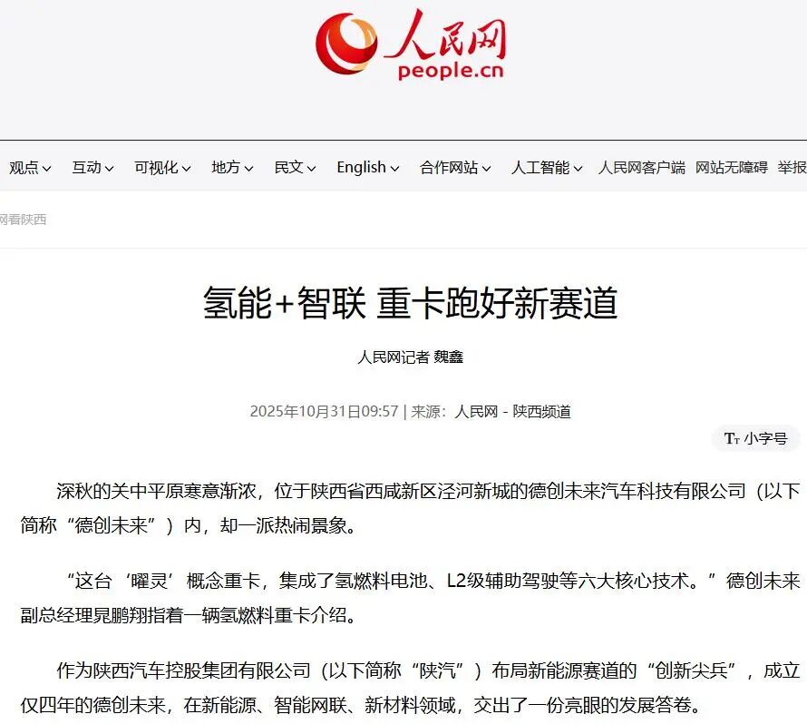 2021年成立当年,德创未来即实现首款氢能重卡产品下线,迈出产业化关键步伐;2023年6月,上海临港首批氢燃料电池渣土车项目交付;2024年10月,德创未来获批陕西省首个氢能重卡高速免费通行资质;2025年4月,氢燃料电池重卡成功通过日本“商用车电动化促进事业”认证,成为该计划下唯一获批的大型氢能卡车品牌;2025年5月,首批氢燃料电池牵引车出口澳大利亚,标志其产品与技术获得国际成熟市场认可。