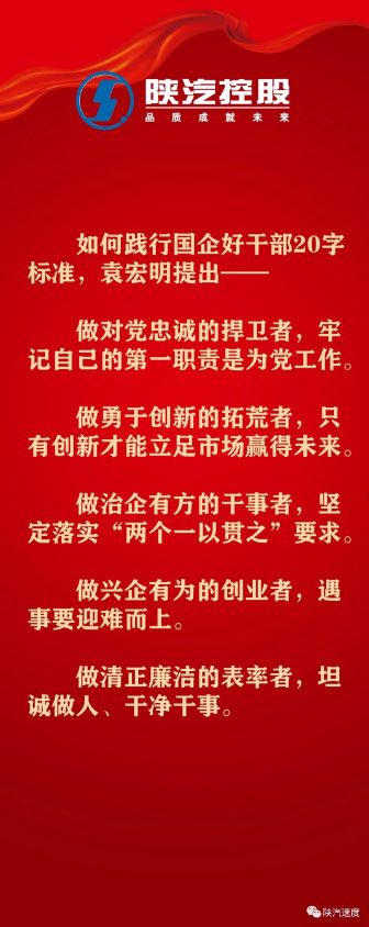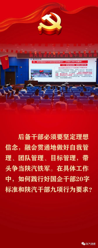 8月2日,在公司后备干部培训班上,陕汽控股党委书记、董事长袁宏明围绕“如何成为一名陕汽好干部”与后备干部进行交流,对领导干部在具体工作中如何践行好国企干部20字标准和陕汽干部九项行为要求进行了重要阐述,提出殷切希望。