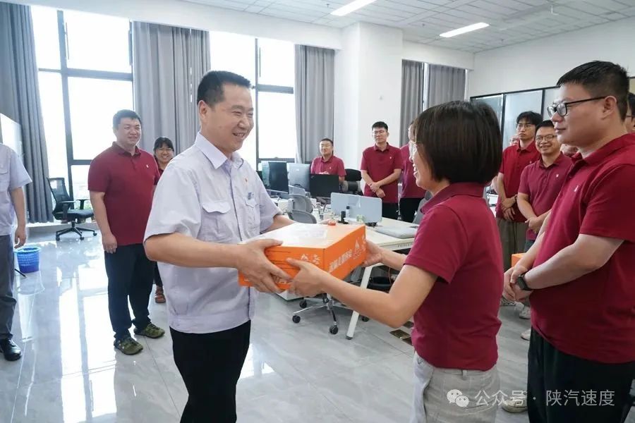 为切实关怀在高温中坚守岗位、奋战订单的员工,7月29日,陕汽控股党委书记、董事长袁宏明,党委副书记、总经理周相强,党委副书记张金山,党委委员、副总经理刘水库,陕重汽总经理支保京分别在西安、宝鸡,走进汉德车桥、德创未来、车架厂等多个单位,看望慰问高温中坚守岗位的一线员工。