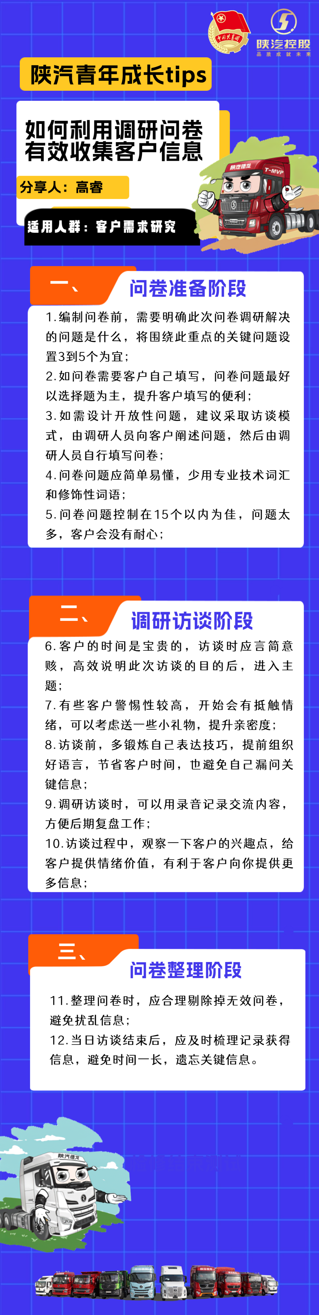 陕汽青年成长tips | NO.30如何利用调研问卷有效收集客户信息